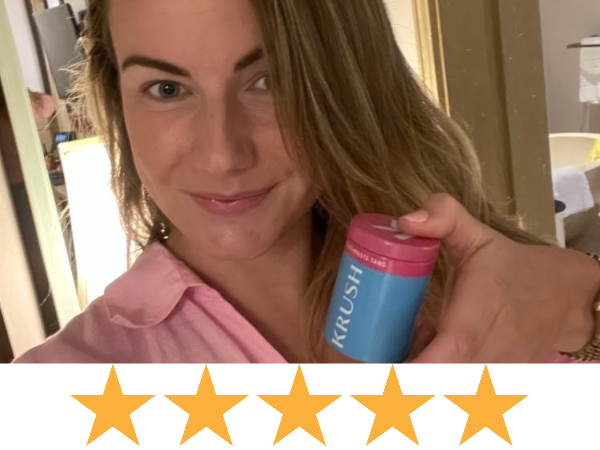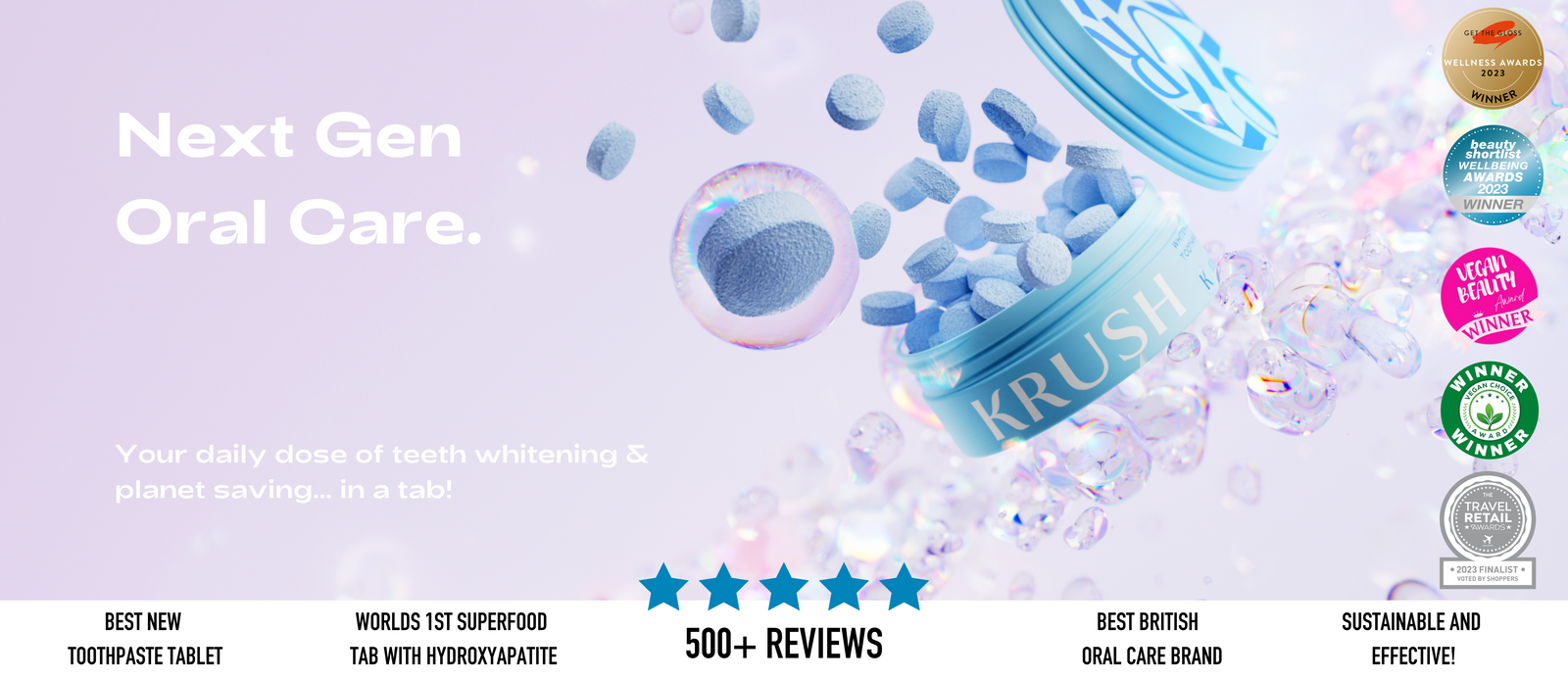 Pop a tab in your mouth, and “krush it” around your mouth for a few seconds.